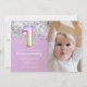 Foto: primeiro aniversario Rainbow Sparkle Invitation Glitter convite de festas para uma garota de 1 ano com escrevendo de script moderno e balões de folha de papel divertida.