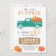 Um convite para o primeiro aniversário de outono com um caminhão de chá vintage carregado com abóboras nas costas.