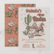 Retro Woodcut Olha, "Primeiro Rodeio" Cowboy ou Convites de festas de aniversários Cowgirl. Apresenta elementos gráficos de cowboy ocidental cactus, paisagem desértica, cavalo com cacto. Cores de castanho, terracota, verde e branco. Para fazer mais mudanças, vá para Personalizar este modelo. Na parte inferior você verá "Quer personalizar este design ainda mais? Clique em EDIT usando a ferramenta Design. A partir daí você pode mudar algumas fontes e algumas cores, mover coisas ou excluir o que você precisa.