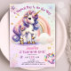 Convites Primeiro aniversario do Unicórnio Rapariga Roxa Do