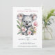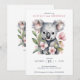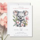 Planeje uma celebração elegante com este convite de urso koala em aquarela que seus convidados vão adorar. Ele apresenta um adorável urso koala e muitas flores cor-de-rosa.