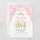 Princesa, Rosa, Dourada Brilhante, Convite Para primeiro aniversario