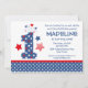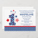 design de primeiros aniversarios, personalizado e bonito, em 4 de julho, com um grande fogos de artifício azul número um, cheios de estrelas vermelhas e brancas e estreladas por estrelas. Texto personalizável. Perfeito para o primeiro aniversário de 4 de julho! PinkInkArt original!