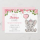 Garota primeiro aniversario convidada com um adorável elefante princesa rosa vestindo uma tiara prateada e rodeada por flores cor-de-rosa. Entre em contato conosco para obter ajuda com a personalização ou para solicitar produtos correspondentes.