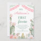 Convites Primeiro aniversario Floral Verde Cor Rosa Primeir