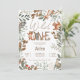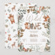 Um selvagem! Uma mão adorável e fofa pintada de aquarela, os animais florestais rústicos e verdes da floresta, convites de festas de primeiro aniversario com ursos bonitos, veados, guaxinim, coelho, ouriço e uma raposa de cor florestal neutra, de cor laranja, verde, castanha. com folhas verdes e ramos de árvores. O primeiro convite de aniversário para todos os anos é perfeito para um bebê neutro em sexo!