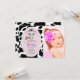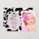 Vaca sagrada, branca, rosa, com primeiro aniversario floral, com fotografia e impressão de vaca.