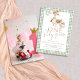 Festa de primeiro aniversario Gingham Gingham, um Bobo bonito, ganha fotos. Com um script na moda set para as palavras Bobo Goose e personalize facilmente o resto do texto para seus detalhes. Um ganso doce, ferramentas e balões gráficos está no topo, com um fundo de gingham sage. Substitua a foto da amostra no verso por sua.