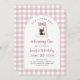 Convite para primeiro aniversario Gingham Halloween Ghost Girl Rosa