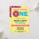 Primeiro aniversario Geminado Amarelo Rosquinha Kawaii, bonito e atraente, feito para qualquer bebê no seu primeiro aniversário. Se você está procurando por convites de aniversário para irmãos, convites de aniversário gêmeos ou convites de aniversário conjuntos, este é para você. O design apresenta uma rosquinha colorida com informações de festa de aniversário personalizáveis que você pode personalizar para fazer seu próprio convite de aniversário.