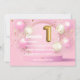 O balão de número de folha cor-de-rosa e dourada de primeira festa de aniversário convida personalizável para as suas especificações de evento.
