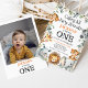 Rapazes Foto Greenery Safari primeiro aniversario Convite Safari O primeiro convite de aniversário do menino do coração, com sete lindos animais da selva, algumas folhagens e uma palavra impressa em animais. Este safari, chamado de aniversário de 1s, também apresenta uma foto no verso e é ideal para um safari criado no primeiro aniversário.