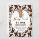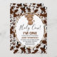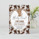 Cute Highland Cow Impressão Convite para primeiro aniversario de Vaca Santa Sagrada Convite para o aniversário de um menino com uma linda imagem de vaca em terras altas e um padrão de cochicho marrom. Este design pode ser usado em qualquer idade.