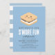Este convite de 1rua/primeiro aniversário do garoto "S'more Fun" de Kawaii, fofo e fofo, apresenta um rosto sorridente num fundo azul. O verso apresenta um fundo branco com faixas azuis. Personalize para suas necessidades. Você pode encontrar mais produtos correspondentes na minha loja.