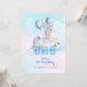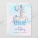 Celebre o primeiro aniversário do seu bebê com este convite de unicórnio pastel sonhador. Os tons voadores de unicórnio e de céu mole trazem um toque de magia para o dia especial do seu filho. (Trabalho de arte Gerado por AI)