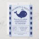 Convide seus convidados em estilo para a festa de primeiro aniversario do seu filho com este convite náutico lindo e temático. Este design de inspiração costeira apresenta fundo azul claro e marinho listrado com uma baleia azul gira com estrelas saindo de seu spout. As palavras acima da baleia leem "Splash! É uma festa!" Abaixo está o nome do seu filho e os detalhes da sua festa para você personalizar. A parte traseira da placa está combinando listras azuis-claras e marinhos. Perfeito para os primeiros aniversários ou mudar para o ano de sua escolha.