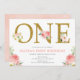 Convites Primeiro aniversario-menina cor-de-rosa-claro e fl