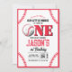 Convites Primeiro aniversario Moderno Vintage Baseball Red