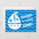 Garotos primeiro aniversario náutico com veleiro, estrelas e padrão de chevron A01 Este design náutico é uma maneira divertida e moderna de convidar pessoas para uma celebração de festa de aniversário. Todo texto na frente e atrás é personalizável. Personalize com seus detalhes do partido!