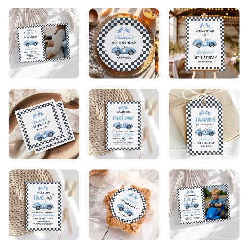Convite para primeiro aniversario de Carro Raça Azul Rápida