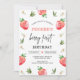 Convites Primeiro aniversario Red Strawberry Daisy Berry Sw