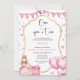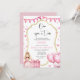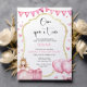 Celebre o primeiro aniversário da sua princesa em estilo com este charmoso convite de temas cor-de-rosa. Apresentando coroa delicada, tipografia elegante e matizes cor-de-rosa macio, ele dá o tom para um evento mágico e memorável. Perfeito para uma celebração real, este convite personalizável fará do seu filho um marco extra especial.