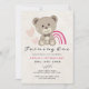 Corações de ursos peludos lindos e design de arco-íris para uma celebração muito especial de primeiro aniversario. Personalize facilmente os detalhes do evento e certifique-se de fazer check-out da minha coleção de cheios para produtos correspondentes.