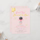Esta primeira viagem ao redor do convite de aniversário do sol apresenta textos retrorados dos anos 70, cores rosa e roxo e ilustrações espaciais. As costas são cor-de-rosa com estrelas douradas, fazer este o convite perfeito para celebrar o seu astronauta muito fofo.