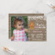 Inverno de Onederland Rustic Girl primeiro aniversario Convite com foto personalizada. Floco de neve branco. Convite de aniversário. Feriado de inverno. Fundo Rustic Wood. Campo de Vintage Retro Barn. Para mais personalização, clique no botão "Personalizar" e use nossa ferramenta de design para modificar este modelo.