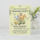 Personalize este Convite para primeiro aniversario Safari Cute com seu Bebê-Garoto ou Nome da Rapariga e dê o tom para uma Festa de Aniversário Feliz. Apresenta uma Leão Doce, Girafa e Elefante, contra um fundo verde Pastel, juntamente com outros Animais Safari, todos numa aventura própria. Um toque perfeito de Comemoração de Aniversário da Diversão para aqueles que amam Animais Selvagens.