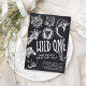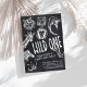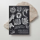 Wild One Safari Jungle primeiro aniversario Invitation Prepare-se para celebrar seu pequeno explorador com esses convites para primeiros aniversarios selvagens! Chamando todos os animais de festa para um safari cheio de diversão ou um caco de aniversário de matas. Estes convites ao estilo 'chalkboard' apresentam animais selvagens de jardim zoológico como leões, elefantes e girafas, perfeitos para a festa de primeiro aniversario aventureiro de um menino. O tema "Selvagem" define a palco para um cheio de celebração excitante da diversão da selva. Quer você esteja planejando um aniversário de safari ou uma aventura selvagem do zoológico, esses convites são a maneira perfeita de dar um pontapé na festa! Que comece a celebração selvagem!
