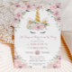 Personalize este convite de aniversário de unicórnio floral floral com facilidade e rapidez. Basta clicar no botão Editar usando ferramentas de Design para editar os textos, alterar as cores das fontes e das fontes. Apresentando um unicórnio fofo e uma pincel de aquarela macia, rosa poeirento, borda de flores brancas. Todo texto é editável. Perfeito para 1rua, segundo, 3 ou qualquer idade de aniversário, chá de fraldas e mais ocasiões! Itens correspondentes disponíveis no repositório. c) Paperie fina somerset