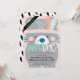 Este "curinga" giro "1rua virtual / primeiro convite de aniversário da menina apresenta um urso cinza com penas em um fundo cor-de-rosa pincelado. O verso apresenta um fundo cor-de-rosa claro com padrões pretos de pincelada. Personalize-o para as suas necessidades. Você pode encontrar produtos correspondentes na minha loja.