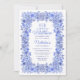 Digam "oui" para estilar com este design de flor silvestre, azul e branca! Desenhado de padrões chineses elegantes e de filmes florais franceses, ecoa o aspecto da porcelana de gengibre clássica e do brinquedo elegante. É só para esquinas de verão, brunches de jardim chic, ou qualquer evento com um tema azul clássico. Personalize agora para adicionar um toque de charme de eterno ao seu evento.