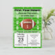 Celebre o primeiro aniversário de um futuro bebê de quarterback com este convite de festas de primeiro aniversario do primeiro ano para o menino de um ano. Campo de futebol verde com futebol e número.