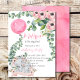 Convites Primeiro Balão Rosa de Aniversário - Elefante Euca