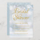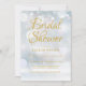 Flocos de neve gentis cruzam seus detalhes do chá de panela, dispostos em elegante texto dourado em um fundo mágico de inverno, este chá de panela chic é ideal para seu chá de panela especial.