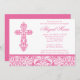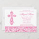 Um convite clássico cor-de-rosa e do branco primeiramente do comunhão santamente. Caracterizando uma cor damasco cor-de-rosa e branca com uma cruz ornamentado do rolo. Elegante e doce -- personalize facilmente para seu evento.