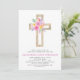 Flores De Rosa Flor Pastel Rosa, Laranja e Roxo Atravessam Aquarelas Botânicas Primeiro Convites Religiosos (1ruas) Santa Comunhão.
