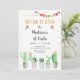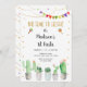 Este convite divertido apresenta suculentos de aquarela com sotaque dourado e sinalizadores de fiesta colorida.