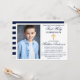 Marinho Elegante moderno Blue First Sagrado Convite à Comunidade com Dourada Cruz e Foto. Bandas brancas e azuis nas costas.