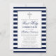 O Elegante Primeiro Convite da Comunidade com Cruz. Stripes Azul e Branco. Silver Cross.
