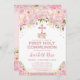 Convites Primeiro Sagrado Rosa de comunhão Dourado, cor-de-