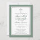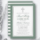 O Elegante Moderno, Primeiro Convite à Comunhão com Cruz. Listras Verdes e Brancas. Silver Cross.