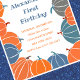 Convite para primeiro aniversario de outono de outono de Pumpkin Blue Fall Autumn Halloween: Este convite para primeiro aniversario de outono em azul e laranja com este bonito quadro colorido de abóboras é para crianças (menino ). O convite para o primeiro aniversario de halloween " Por favor, junte-se a nós para celebrar o primeiro aniversário de Alexandra... outubro.." é excelente para o aniversário de outubro. Você pode personalizar estes convites modernos de festas de aniversário de halloween com todas as suas informações. Perfeito para os convites para o primeiro aniversário de halloween, convites para o primeiro aniversário de halloween, festa de primeiro aniversario, primeiro aniversário de halloween, festa de aniversário de menino, aniversário de outubro, primeiro aniversario de menino... TEMA HALLOWEEN (convite para o primeiro aniversário de halloween, primeiro aniversario de halloween, convite para abóbora, convite para o aniversário de outono, outubro, para crianças, rapaz)