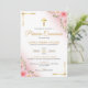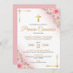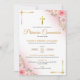 Celebre a Primeira Comunhão da sua menina com este convite com flores rosa e crus. Perfeito para uma Primeira Comunhão Católica. Disponível em espanhol. Celebra la Primera Comunion de tu bebita con invitación de cruz y Fladas.