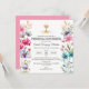 Celebre a Primeira Comunhão de sua filha com este convite quadrado para meninas, com flores silvestres rosa. Este convite católico é a forma perfeita de anunciar este marco especial no estilo. Espanhol/Espanhol: Celebra la Primera Comunion de tu hijo o hija con esta invitación.