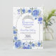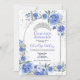 Uma bonito e elegante reviravolta moderna ao Quinceañera tradicional, com uma princesa tiara reluzente princesa tiara, com uma mão pintada de buquê azul floral e botânico, e flores azuis do céu com confete de luz de cinza prateada e forma moderna de arca reluzente, com uma elegante tipografia de texto Quinceñera. Adicione a sua foto atrás, perfeita festa de aniversário de Mis Quince com uma rosa-princesa de ouro tiara.