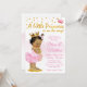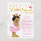 Princesa convidada para um duche de bebê com adorável princesa africana americana, bebê vestindo um tutu rosa e uma corda de pérolas em um adorável brilho de ouro e fundo de diamante.
