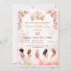 Anuncie a comemoração real da sua princesa com este encantador convite à Princesa Aniversário! Adornada com uma coroa rosa e dourada, flores delicadas e princesas adoráveis em vestidos pastéis. Este convite é a introdução perfeita para um dia cheio de magia e alegria. :) Personalize facilmente os detalhes. Perfeito para qualquer aniversário de uma garotinha. - Kate Eden Art